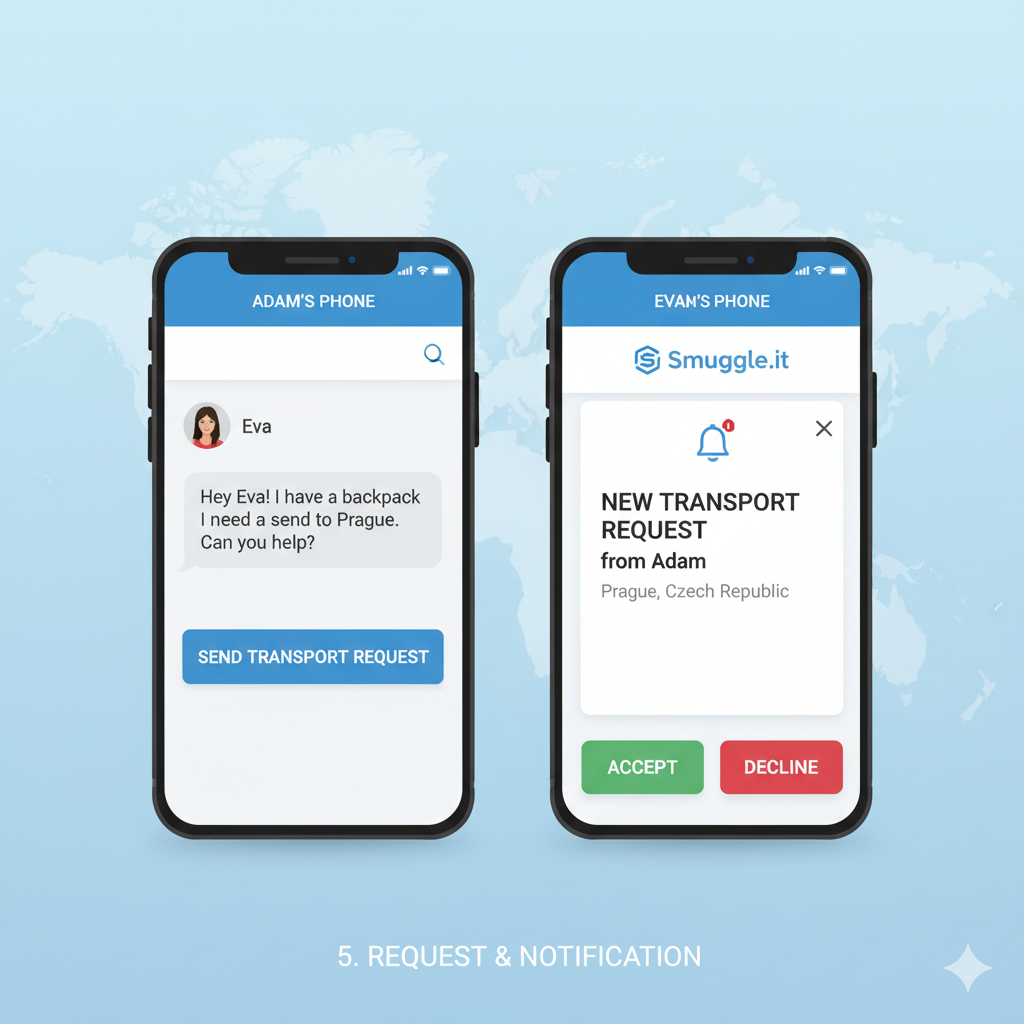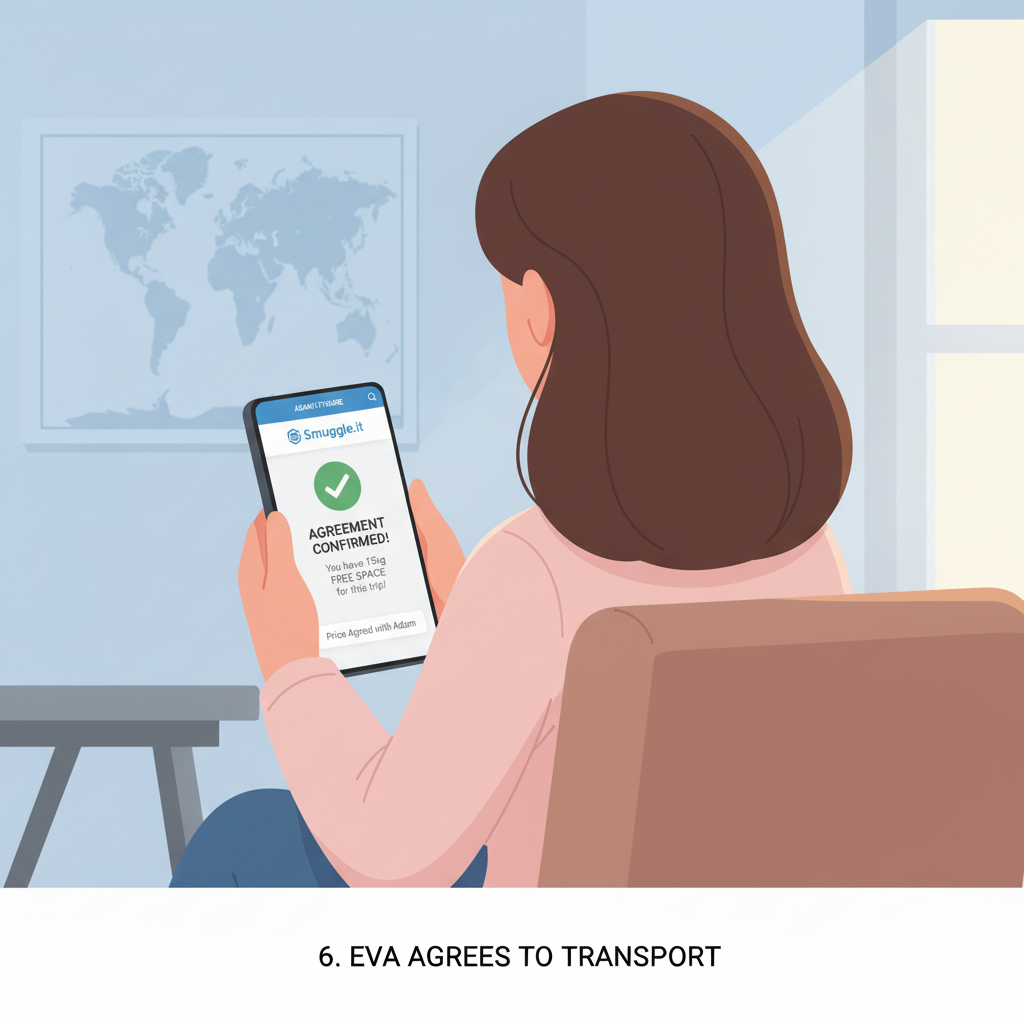 transport his belongings to Europe and Eva received a notification with a transport request from Adam
